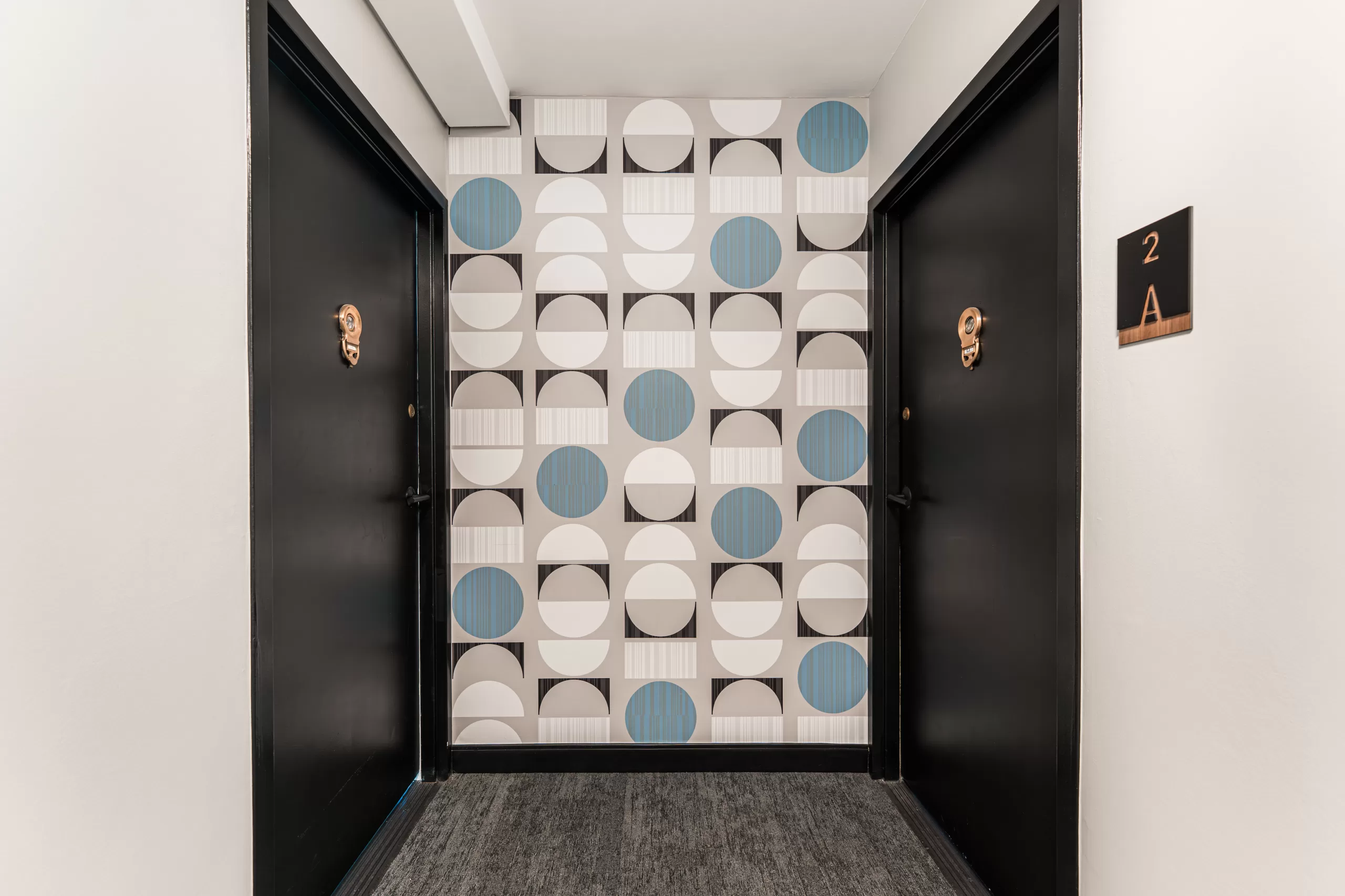 IOC Construction was selected to remodel the hallways of the 3900 N. Lake Shore Drive condominium building, a multi-floor renovation requiring careful coordination across painting, flooring, carpentry, and electrical trades. The scope of work included skim-coat wall prep, wallpaper installation, new carpet and thresholds, light fixture updates, elevator area millwork and hardware upgrades to improve both function and aesthetic appeal.